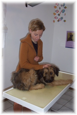 Meine Tierärztin, Frau Strunk, gibt sich immer super viel Mühe mit mir. Weil ich so mißtrauisch bin und es erstmal so richtig uncoolfinde, wenn jemand an mir rumfummelt. Aber so langsam beeindruckt sie mich echt, denn wenn sie mit mir spielt, krabbelt sie auch aufm Boden rum. Find ich dann voll lustig. Außerdem darf ich immer zur “Kuschelstunde” kommen. Dafür mal ein großes DAAAnke das sie so geduldig mit mir ist.